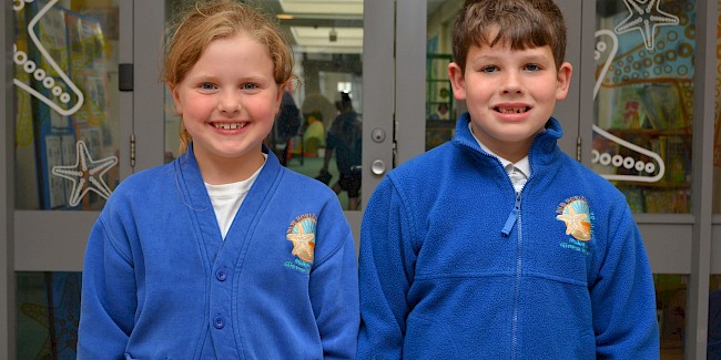 Our uniform is a royal blue sweatshirt or cardigan with a grey skirt or trousers and a white shirt or polo top. There are a number of other items of school clothing available for example a fleece and a coat. Children are encouraged to wear uniform displaying our logo, although this is not a requirement. Please ensure your child also wears sensible shoes.
